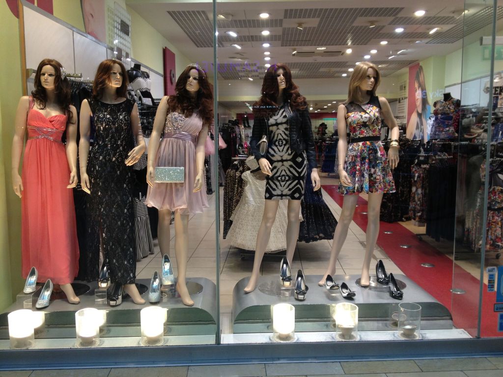 The image above is an example of a bad retail display. There is no color scheme or rhythm to the window display. There are no props to tell a story, nor is there a background to divide the window display from the rest of the retail space. The lights at the bottom of the window display do not flatter the mannequins or the outfits presented on the mannequins. This display looks like a thrown together mess, with no story line or focal point.